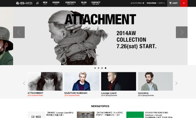 大きく見やすいグラフィック、洋服のイメージを損なわない真っ白で余白を大きくとったレイアウト等