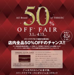 今年も皆様に店内全商品50%OFFのチャンスがあります。