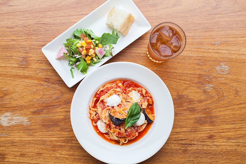 B. 水牛モッツァレラと茄子のトマトソースタリアテッレ – ¥1,400