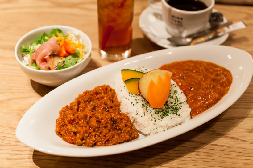 キーマカレーとバターチキンカレーのコンビネーションカレー