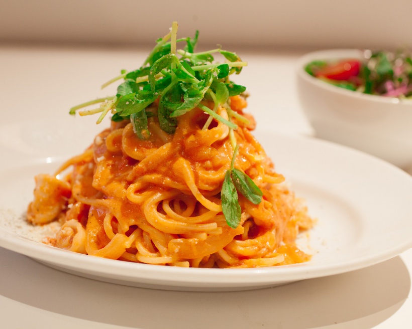 ヤリイカと辛子明太子のトマトクリームパスタ
