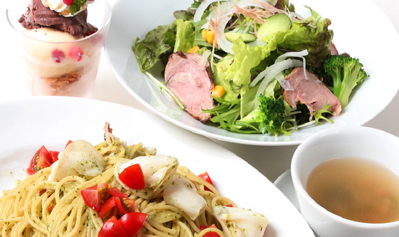 特製のミニパフェが付いたちょっとリッチなパスタのセット♪