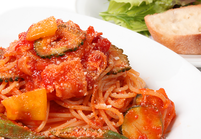 ●ベーコンと夏野菜のスパゲッティ