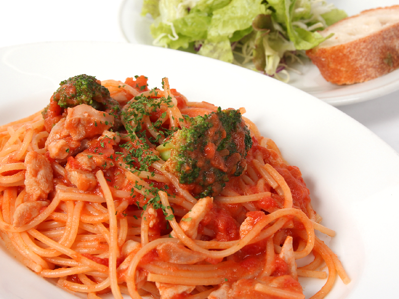 ●あらびきハーブチキンとブロッコリーのトマトクリームソース