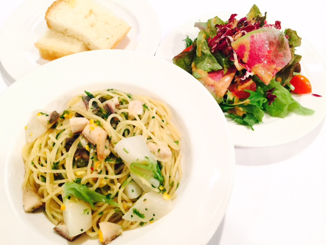 A 鰆・カブ・青のりのオイルソース スパゲッティ 柚子風味/1,200円