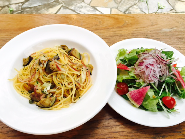 A ツブ貝・ナス・ミョウガのオイルソーススパゲッティ/1,200円