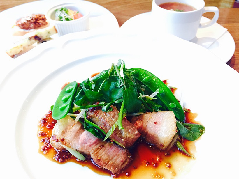 A. お肉『純白のビアンカ』新潟県産豚肩ロースのロースト 山菜のサラダ仕立て – ¥1,500