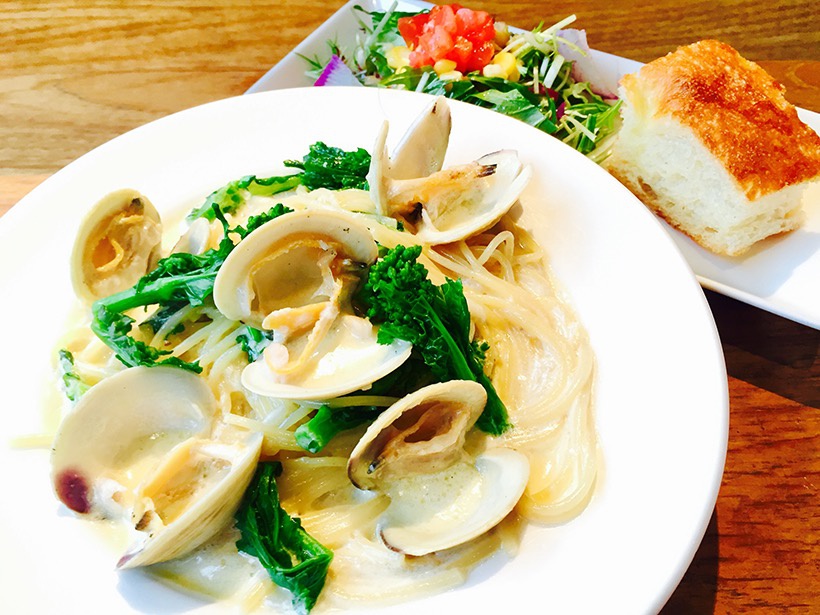 B. アサリと菜の花のクリームソース スパゲッティ – ¥1,400