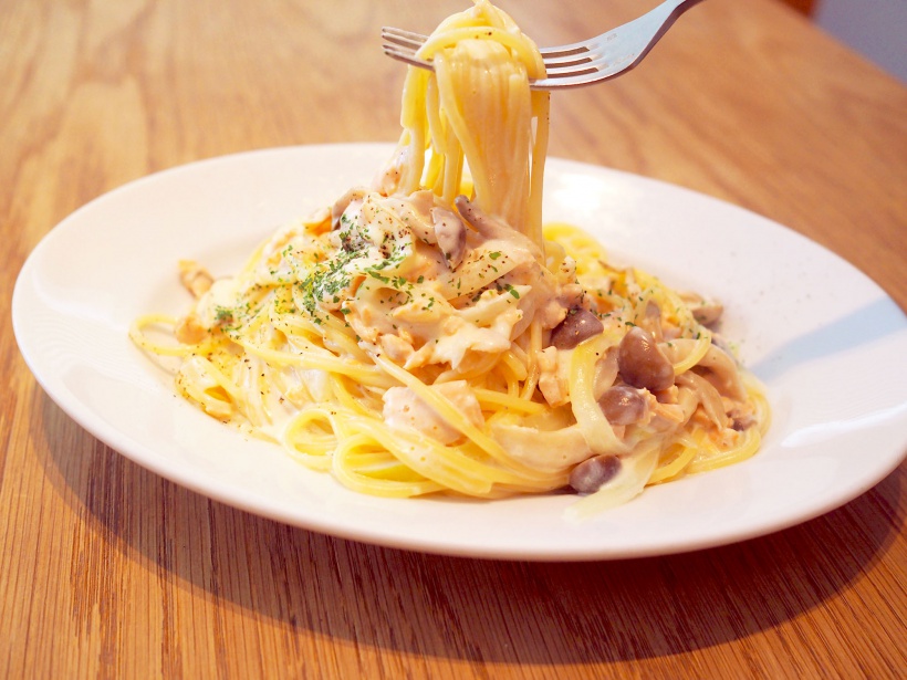サーモンときのこのクリームパスタ