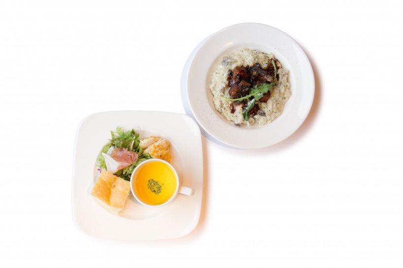 旬のキノコのチーズリゾットとスペアリブの赤ワイン煮込み ¥1,400